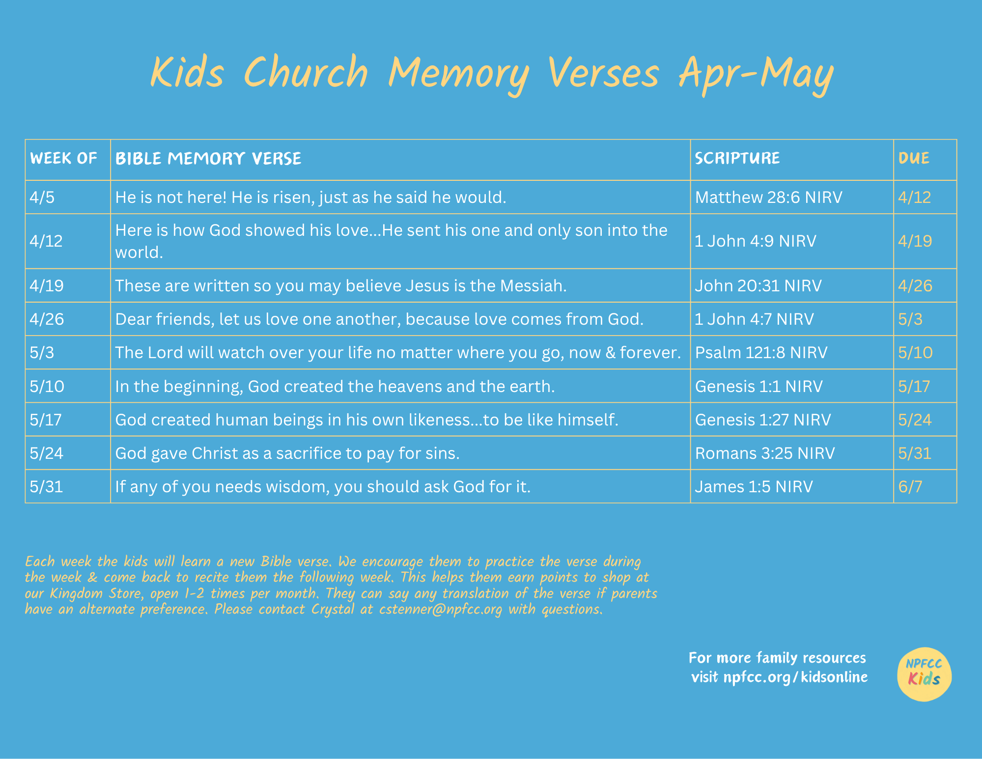 See what we are teaching each month and find additional activities and resources at our Kids Online Page.