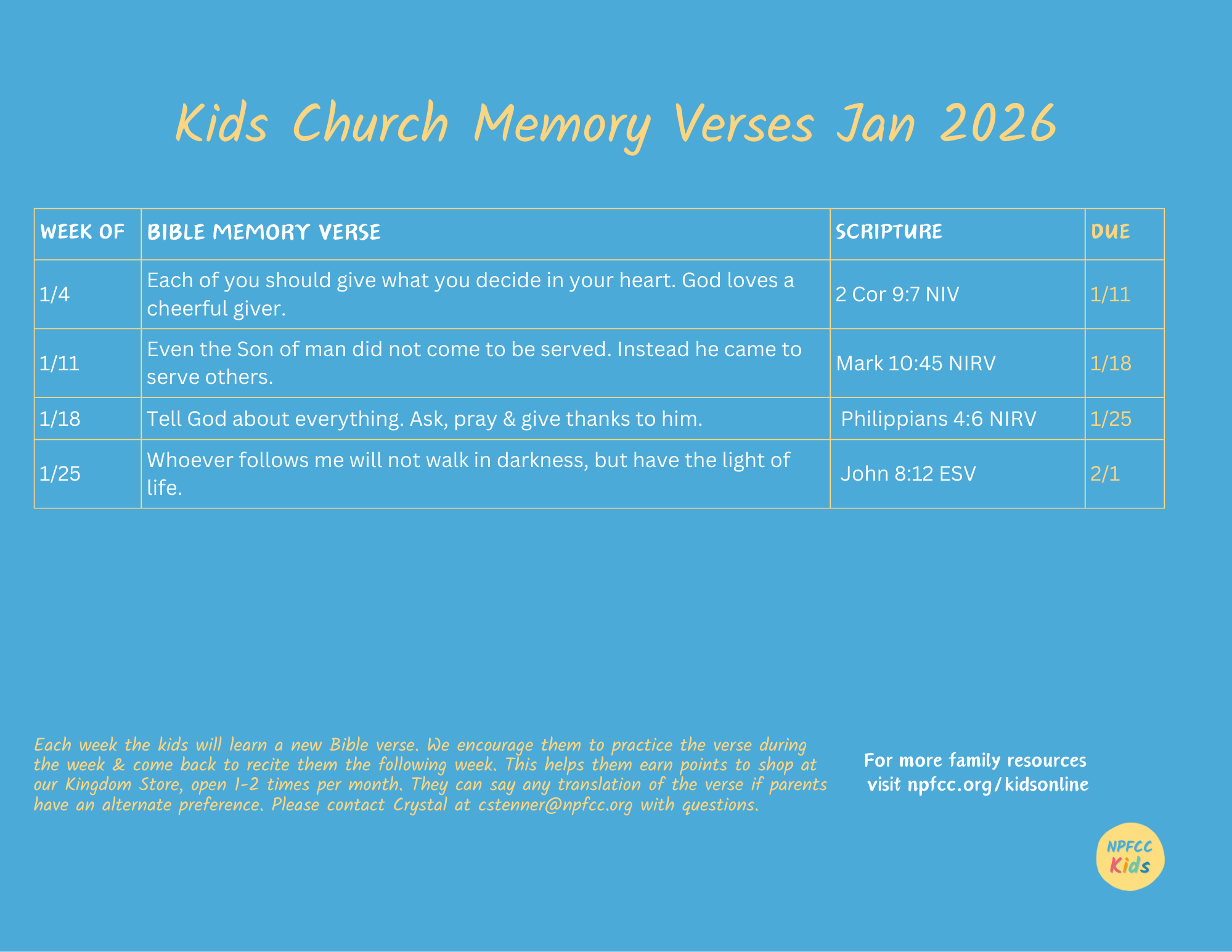 If you would like more info about this special program we have in Kids Church each week, please visit our Bible Buddies Page